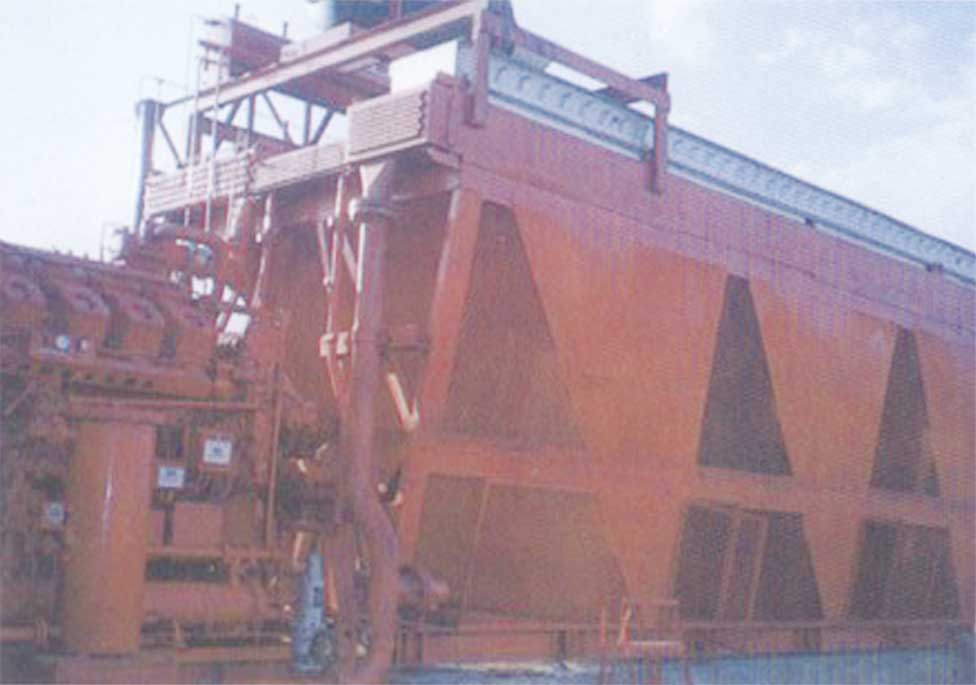 熱燒結(jié)礦從燒結(jié)機(jī)尾部落下經(jīng)過單輥破碎振動篩篩分后,落到冷卻機(jī)傳送帶上,在冷卻機(jī)上布置有數(shù)個冷卻風(fēng)罩,風(fēng)罩內(nèi)裝有軸流風(fēng)機(jī)(吸風(fēng)式),使冷卻風(fēng)通過礦料層,能過礦料層后的風(fēng)溫在第一風(fēng)罩內(nèi)一般可達(dá)250~400℃,第二風(fēng)罩內(nèi)風(fēng)溫一般為200℃左右。冷卻礦料的另一種形式是鼓風(fēng)冷卻,即風(fēng)機(jī)在礦料層底部鼓風(fēng),通過礦層后進(jìn)入風(fēng)罩排空。